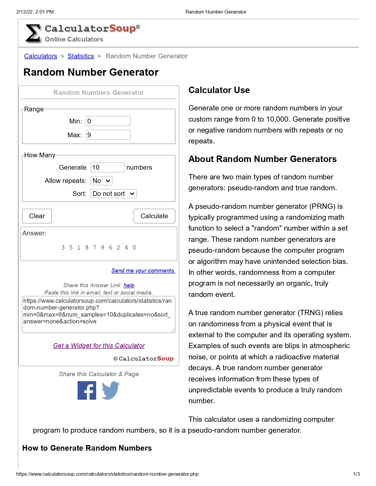 Random Number Generator Source: https://www.calculatorsoup.com/calculators/statistics/random-number-generator.php